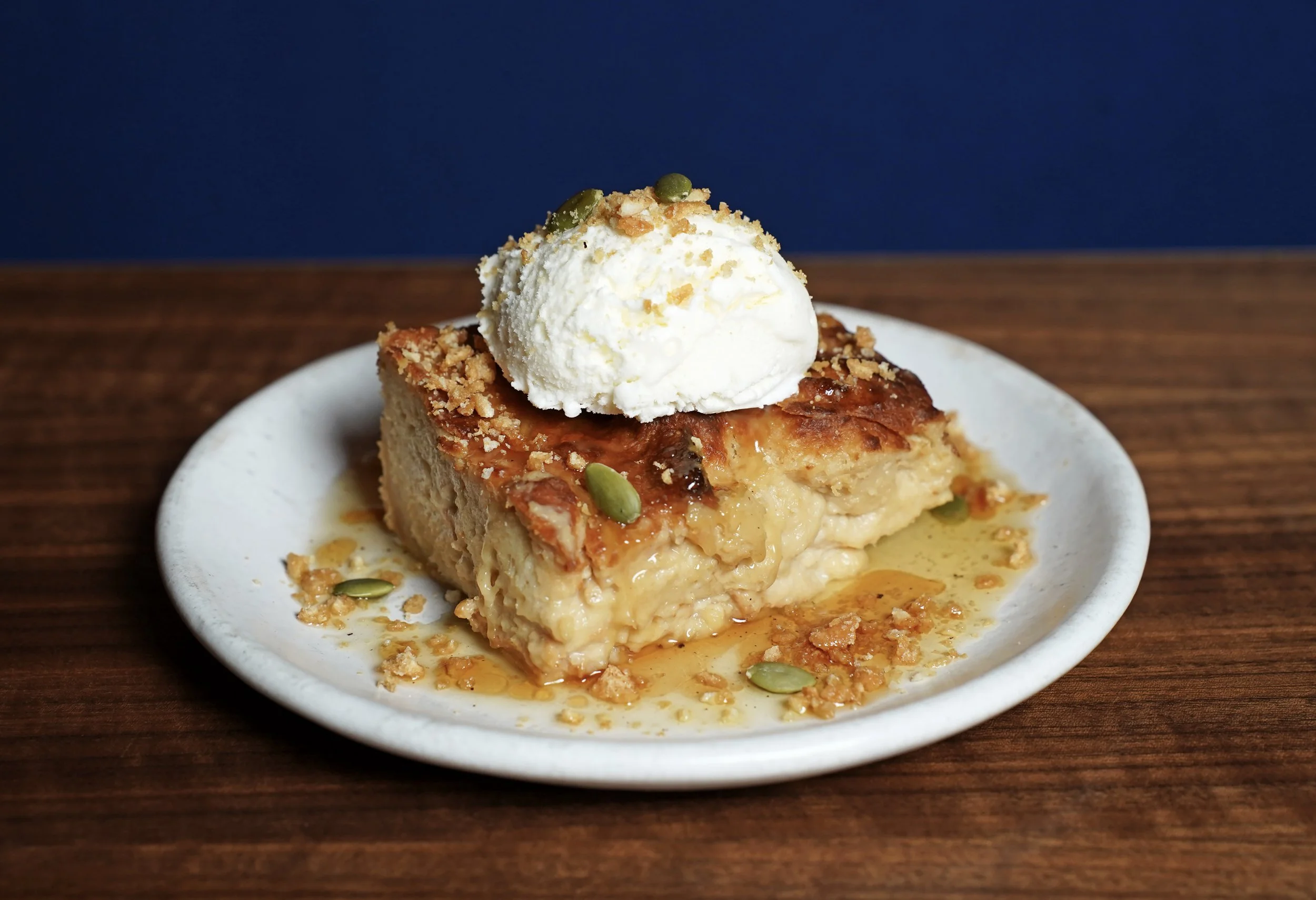 Ho-Tteok inspired, served warm. Peanut, Pumkin Seeds, Butter Cinnamon Syrup, Vanilla Ice Cream
